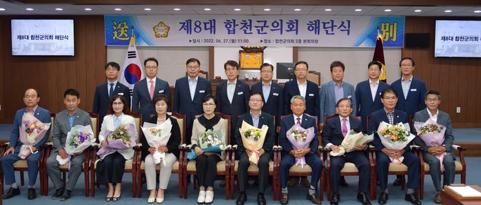 제8대 의원과 관계 공무원 등 50여 명이 참석한 이 날 행사에서는 이선기 합천군수 권한대행의 감사패 및 직원 정패 전달, 의정활동 동영상 시청 및 제8대 군의원으로서의 소감발표, 기념촬영 순으로 진행됐다.