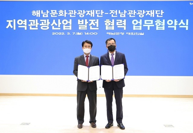 [해남=정찬남 기자] 전남 해남문화관광재단은 지난 7일 해남군청 대회의실에서 전남관광재단과 업무협약을 체결했다.