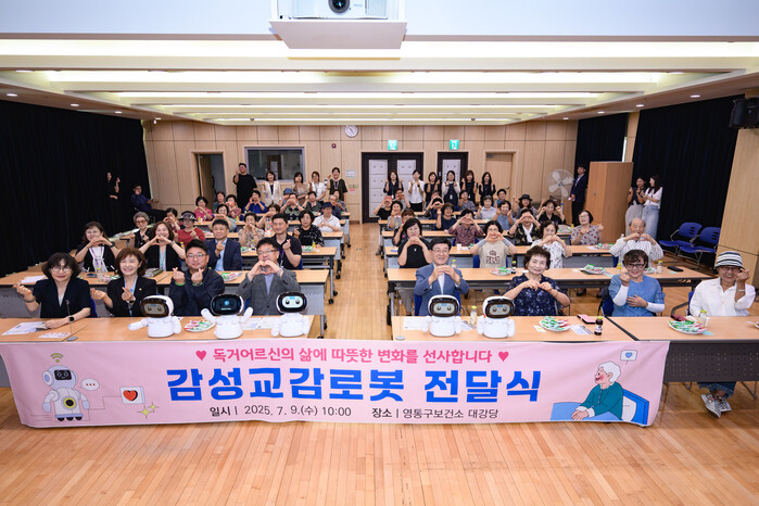전달된 ‘감성교감로봇’은 생활·건강 문진, 챗GPT 기반 음성대화, 음악·영상 콘텐츠 제공, 위급상황 감지 및 알림 기능 등을 갖추고 있어 노인들의 외로움과 고독사 예방에 기여할 것으로 기대된다.