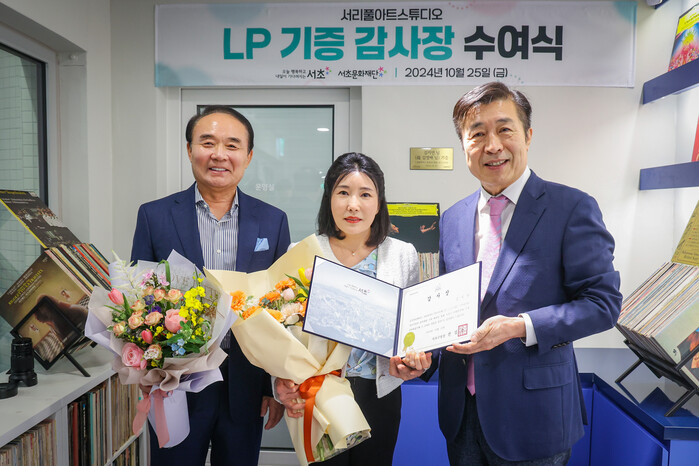 이번 LP 기증은 지난 4월 진행된 ‘서리풀 LP 기증 릴레이’의 일환으로 진행됐으며, 서리풀아트스튜디오 조성과 이용 활성화를 기대하며 여러 주민들이 LP 기증릴레이에 참여했다. 그중 가장 많은 수의 LP를 기증한 김지연 씨에게는 감사장도 수여됐다.