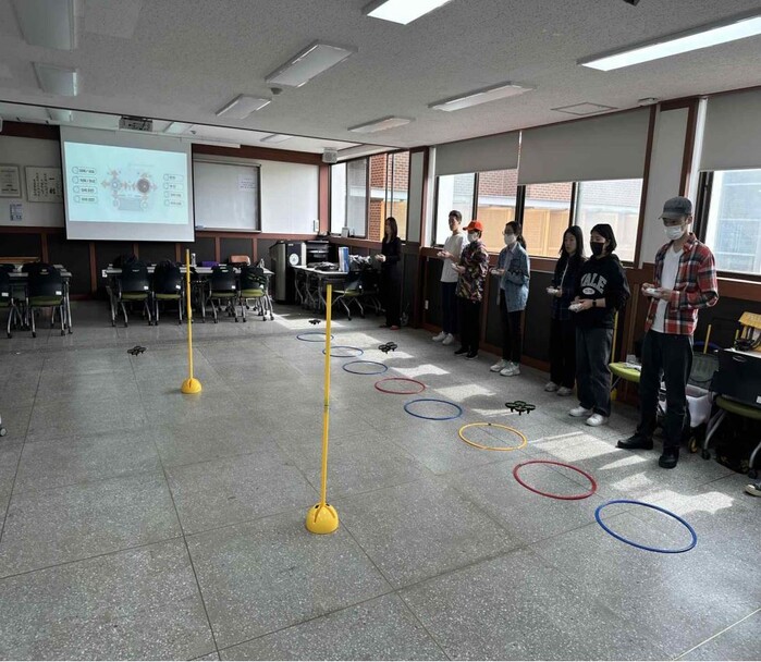 | ▲ 드론 기초 실습 프로그램에 참여하고 있는 청년들. (사진=노원구청 제공) |