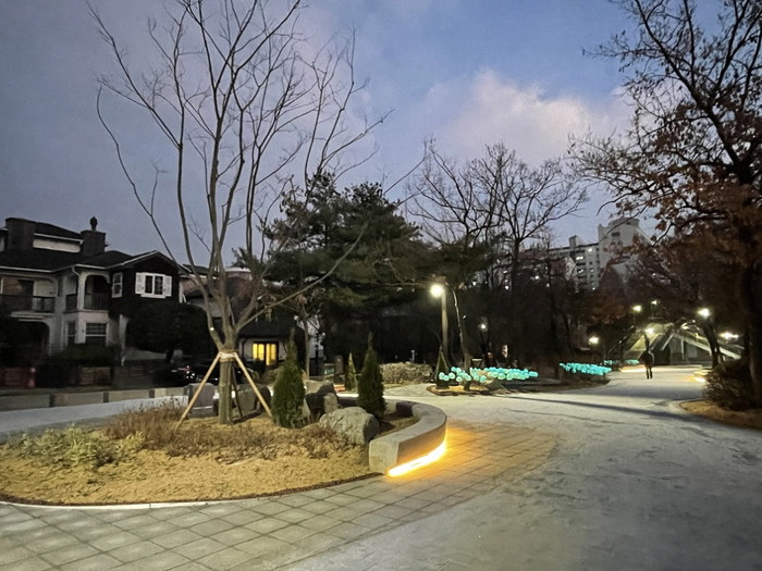 아울러 휴게시설인 앉음벽 하부에 LED 조명 및 녹지대 내 수국 조명을 설치해 야간에도 조경을 즐기면서 안전하게 보행자 도로를 이용할 수 있도록 했다.