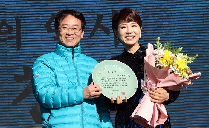 [강진=정찬남 기자] 전남 강진군이 지난 25일 4년 만에 대면으로 개최돼 큰 관심을 모으고 있는 제51회 강진청자축제 개막식에서 전통 트로트 여제, 가수 문희옥씨를 군 홍보대사로 위촉했다.