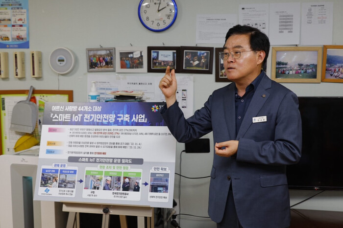 ‘스마트 IoT 전기안전망’은 어르신사랑방의 전기 사용량을 분석해 이상 상황을 24시간 실시간으로 감지해주는 시스템이다. 누전, 과부하 등과 같은 이상 징후 등을 미리 예측할 수 있다.