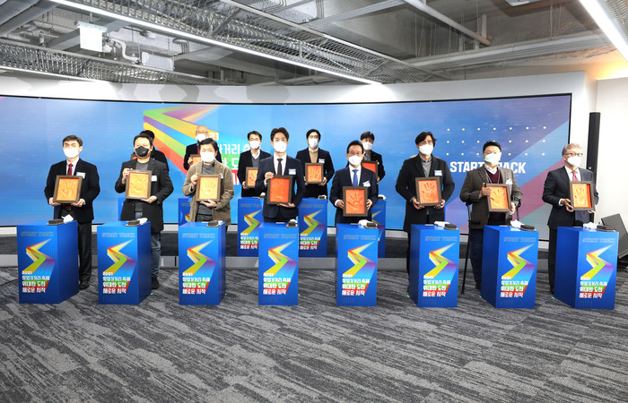 강남구가 17일까지 3일간 아산나눔재단·포스코그룹·한국엔젤투자협회와 함께 ‘2021 창업가거리 축제’를 개최한다. 주요 프로그램으로는 IR(투자유치)피칭대회, AI(인공지능)전시 및 강연 등이 진행된다. 사진은 15일 열린 축제 개막식에서 정순균 구청장(앞줄 오른쪽 네 번째)가 관계자들과 핸드프린팅을 들고 기념촬영을 하는 모습. (사진제공=강남구청)