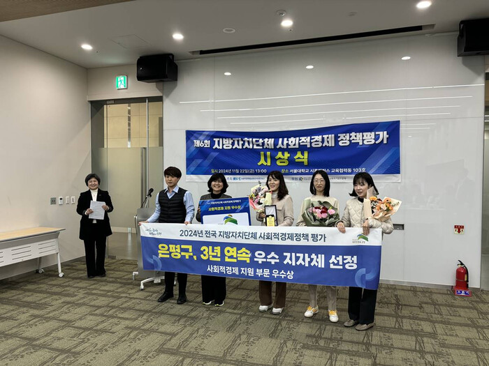 은평구는 2022년 거버넌스 부문 우수상, 2023년 고용노동부 장관상에 이어, 2024년 사회적경제지원 부문 우수상 수상으로 사회적경제정책 평가 3년 연속 수상의 영예를 안았다.