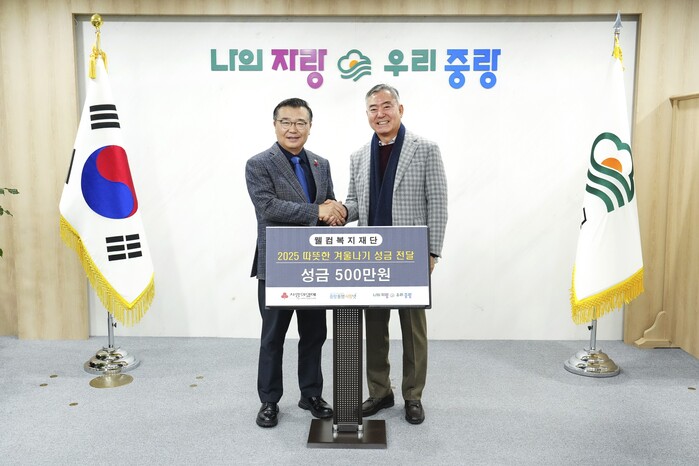 | ▲ 지난 23일 웰컴복지재단으로부터 성금 500만원을 전달받았다. (사진=중랑구청 제공) |