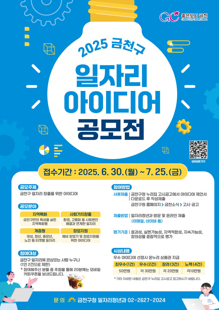 제안서는 구청 일자리청년과에 방문하거나 전자우편(jyjs0977@geumcheon.go.kr) 또는 네이버폼을 통해 제출하면 된다.