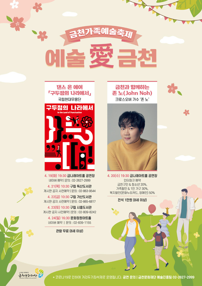금천문화재단 오진이 대표이사는 “따뜻한 봄을 맞아 구민들이 폭넓은 문화예술을 경험할 수 있도록 이번 공연을 준비했다”라며, “앞으로도 구민들의 다양한 문화 욕구 충족을 위해 대면 공연뿐만 아니라 양질의 온라인 공연 프로그램 개발에도 힘쓰겠다”라고 말했다.