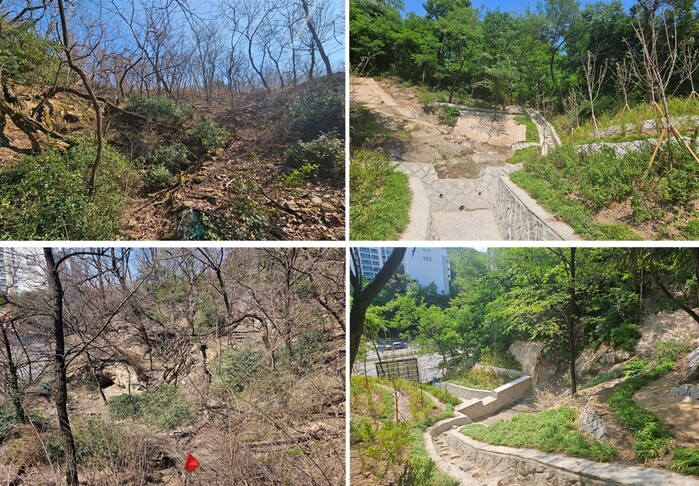 | ▲ ‘산골고개 인근’ 산사태 예방사업 시행 전후 비교 모습 (사진=서대문구청 제공) |