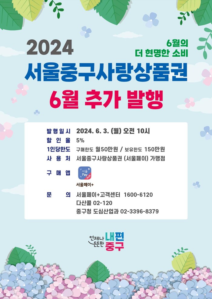[시민일보 = 여영준 기자] 서울 중구(구청장 김길성)가 오는 3일 오전 10시 중구사랑상품권 발행을 시작한다.