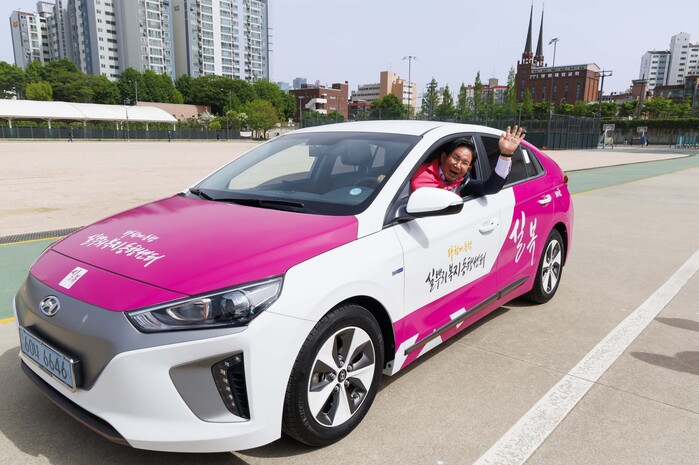 | ▲ 실뿌리복지 동행센터에서 운영될 차량에 탑승해 손을 흔드는 박강수 구청장 (사진=마포구청 제공) |