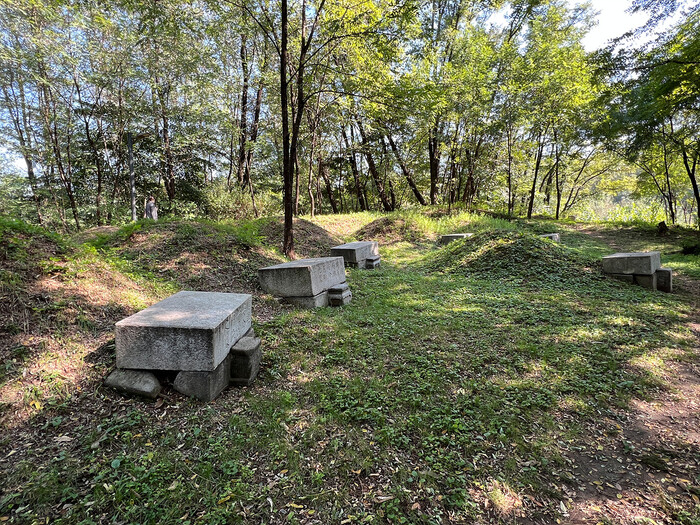 | ▲ 서울 초안산 분묘군(도봉구)의 분묘와 석물(2022년 10월11일 촬영, 순흥안씨 묘역 일대). (사진=도봉구청 제공) |