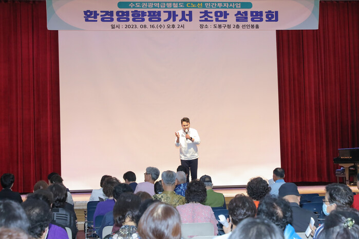 도봉구에 따르면 이날 주민설명회는 수도권광역급행철도(GTX) C노선 사업 시행으로 발생할 수 있는 환경문제와 대응방안 등을 주민들에게 설명하고 의견을 수렴하고자 마련됐다.