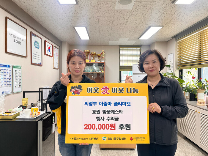 경기 의정부시 호원1동 주민센터가 최근 의정부아줌마플리마켓으로부터 벚꽃축제에서 발생한 수익금 20만원을 기탁받았다. 사진은 기탁식에서 관계자들이 기념 촬영을 하는 모습. (사진=의정부시청 제공)