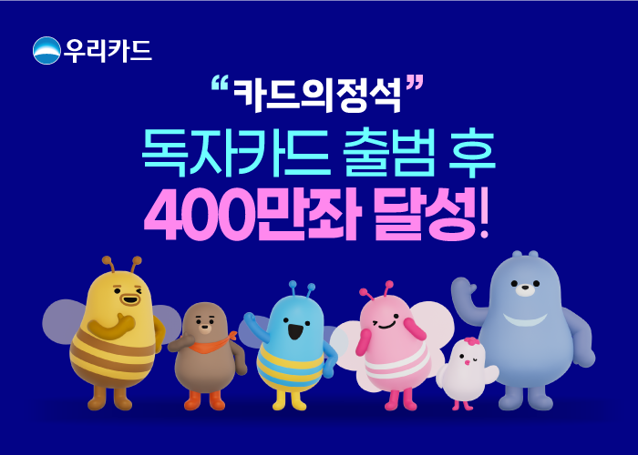 [시민일보 = 박소진 기자] 우리카드가 지난 2023년 7월 ‘독자결제망 출범’ 이후 15개월 만에 독자카드 발급 누적 400만좌를 돌파하는 쾌거를 달성했다고 30일 밝혔다.