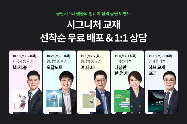 오프라인 배포는 교재 제작에 참여한 공단기의 강사를 직접 만나 전달 받는 형식으로 사전 이벤트에 당첨된 수험생이 특별 간담회에 참석하게 된다.
