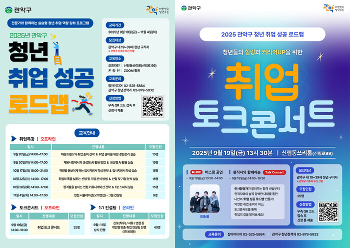 [시민일보 = 문민호 기자] 서울 관악구(구청장 박준희)가 급변하는 채용 환경 속 청년 구직자의 취업 실전 역량 강화를 지원하는 ‘2025 청년 취업 성공 로드맵’을 공개했다.