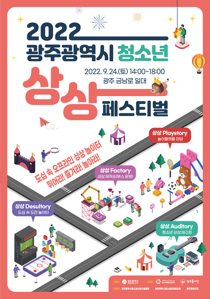 청소년 상상 버스킹 공연은 미리 선정된 통기타 합주, 댄스, 보컬 등 8개 팀이 청소년 상상 이야기를 전달할 예정이다. 청소년 상상 버스킹 공연은 현장 접수를 통해 누구나 참여할 수 있다.