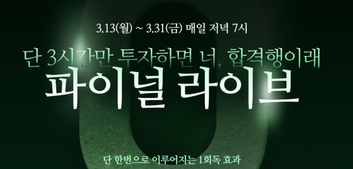 파이널 라이브 특강은 13일부터 31일까지 3주간 평일(월~금) 오후 7시부터 3시간 동안 진행된다.