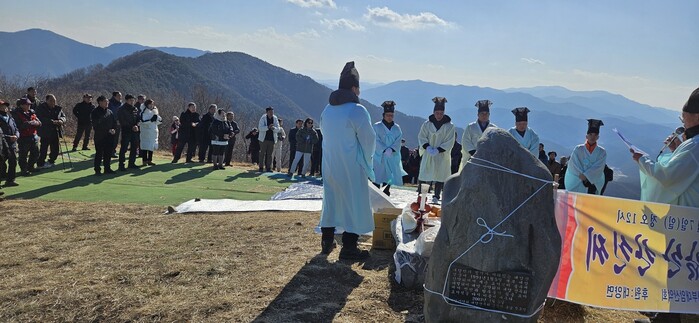 산신제는 대양산우회 변종철 회원의 집례로 초헌관 박창열 대양면장, 아헌관 심화섭 대암산악회장, 종헌관 나상정 합천농협조합장, 대축 추찬식 전 대양면장, 좌집사 심재국, 우집사 정병권 등 산우회원들이 각각 맡아 경건하게 거행됐다.