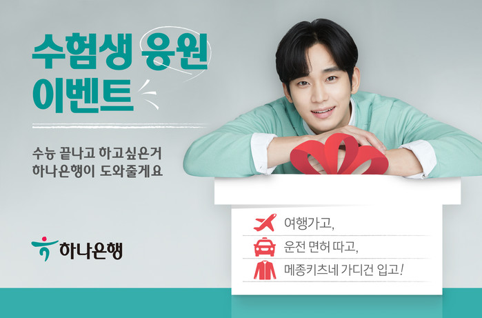 [시민일보 = 여영준 기자] 하나은행은 코로나19 어려움 속에서도 최선을 다한 수능 수험생을 응원하고자 ‘수능 끝나고 뭐할까?’ 이벤트를 오는 30일까지 진행한다고 밝혔다.