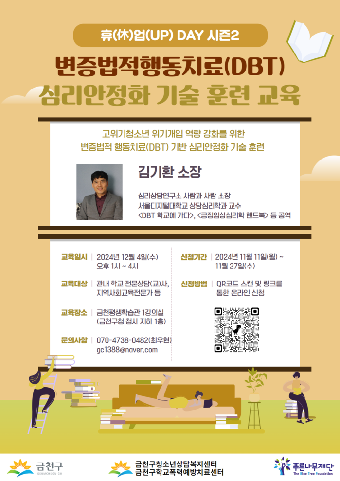 특히, 변증법적 행동치료를 기반으로 한 다양한 심리 안정화 기술을 실습 중심으로 교육해 참여자들이 현장에서 바로 활용할 수 있도록 지원할 예정이다.