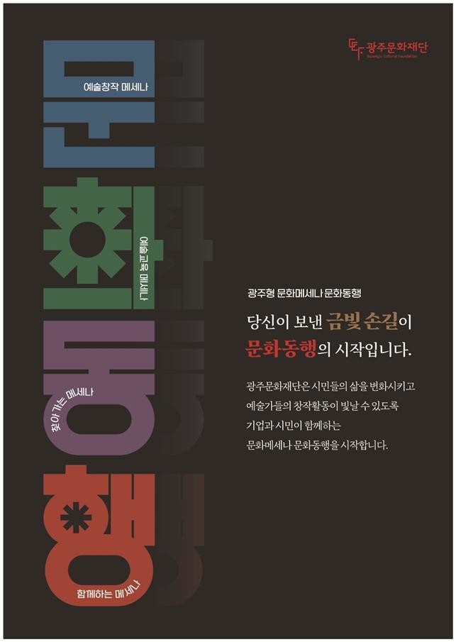 광주형 문화메세나인 ‘문화동행’은 문화예술에 관심 있는 시민, 기업의 기부를 통해 예술인의 창작활동을 지원하는 사업이다.