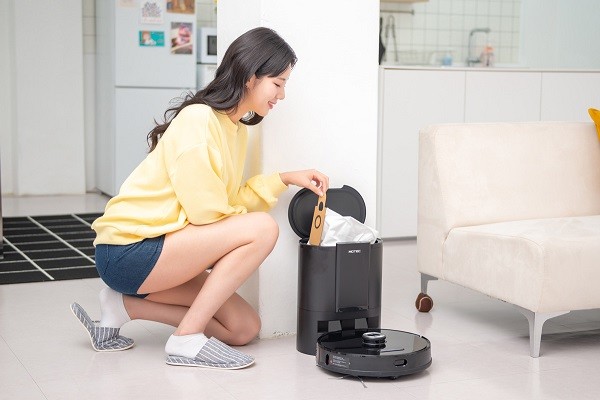 먼지 청소는 전방의 사이드 브러쉬가 청소 방향에 있는 먼지와 이물질을 중앙으로 모아주고, V자 형태의 롤링 브러쉬가 바닥에 밀착해 먼지를 놓치지 않고 쓸어 담는다. 5,200PA의 흡입력을 제공하는 BLDC 모터가 큰 이물질부터 미세먼지까지 빨아들인다. 본체에 배치된 5L 용량의 더스트백은 일반적인 사용 시 1년에 3회만 교체하면 돼 관리도 간편하다.