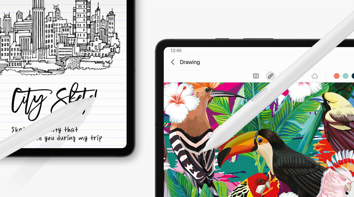 드로잉에 최적화된 'S펜 크리에이터 에디션'은 향상된 기울기 감도를 통해 획 마다 미묘한 차이를 만들어 세밀한 표현이 가능하다. 드로잉 작업을 하다가 메모 작성시에도 펜 교체나 펜 팁 교환 없이 바로 쓸 수 있다.