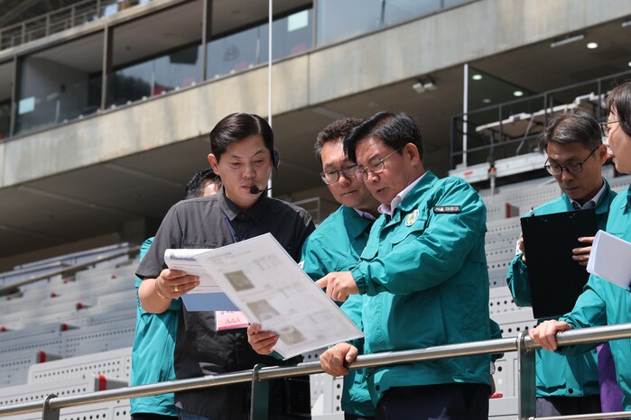 [시민일보 = 변은선 기자] 박강수 서울 마포구청장은 23일 상암월드컵경기장에서 오는 25일부터 이틀간 열릴 인기 가수 임영웅 콘서트 현장을 점검했다.