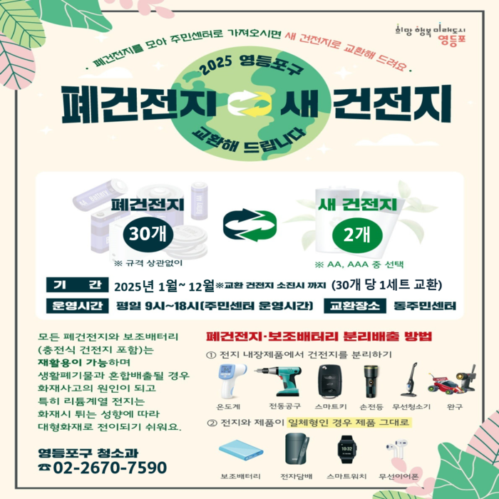 | ▲ 2025 영등포구 폐건전지 교환 사업 안내 포스터. (사진=영등포구청 제공) |