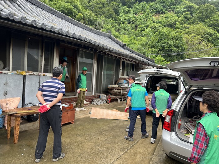 [합천=이영수 기자] 합천군 용주면은 5일 용주면 새마을협의회(회장 류홍) 및 새마을부녀회(회장 김순자) 봉사단원 20여명과 함께 관내 소외계층 가구를 대상으로 사랑의 집 고치기 봉사활동을 실시했다고 밝혔다.