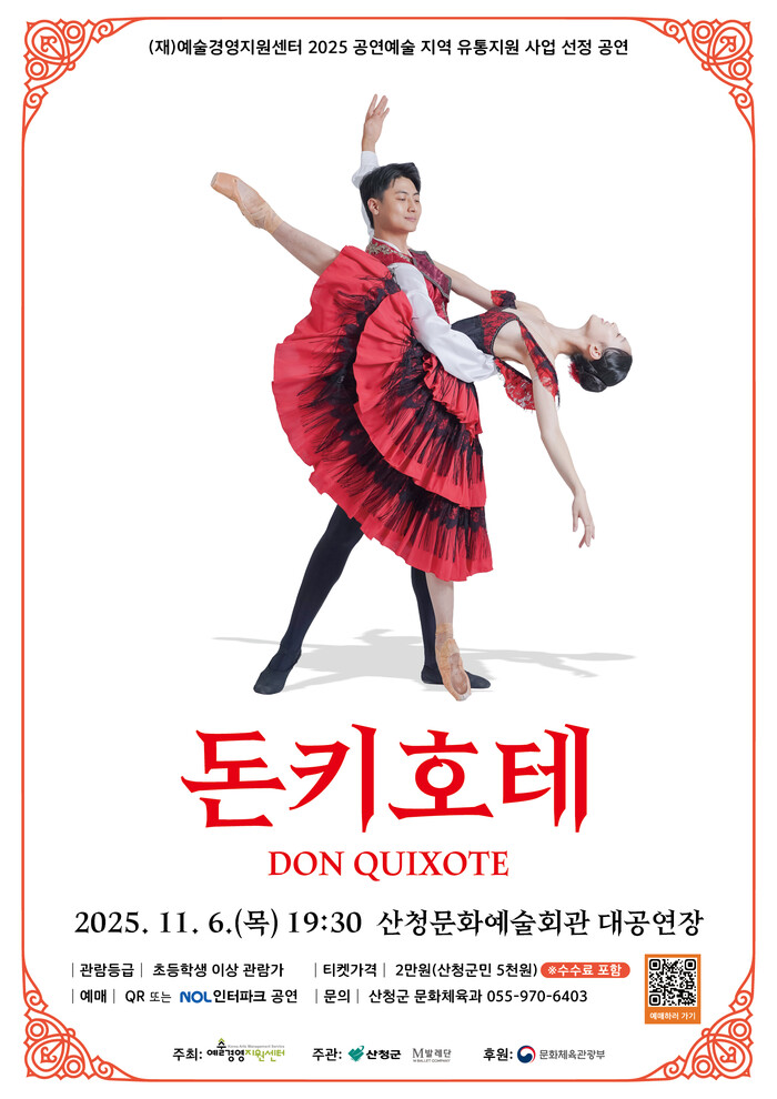 오후 7시30분부터 시작하는 공연에서는 스페인 고전소설 돈키호테를 발레로 재구성해 현실과 이상, 사랑과 용기를 주제로 한 예술적 감동을 선사한다.