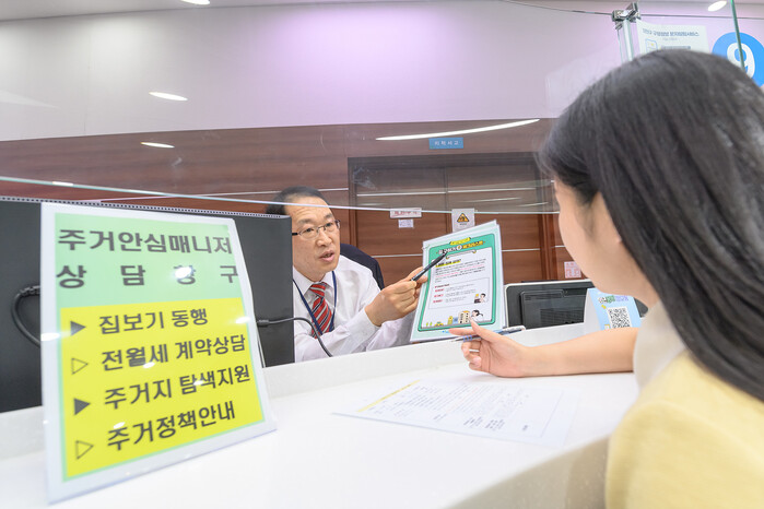 | ▲ 양천구 주거안심매니저 상담창구에서 공인중개사의 조언을 받고 있는 구민의 모습. (사진=양천구청 제공) |