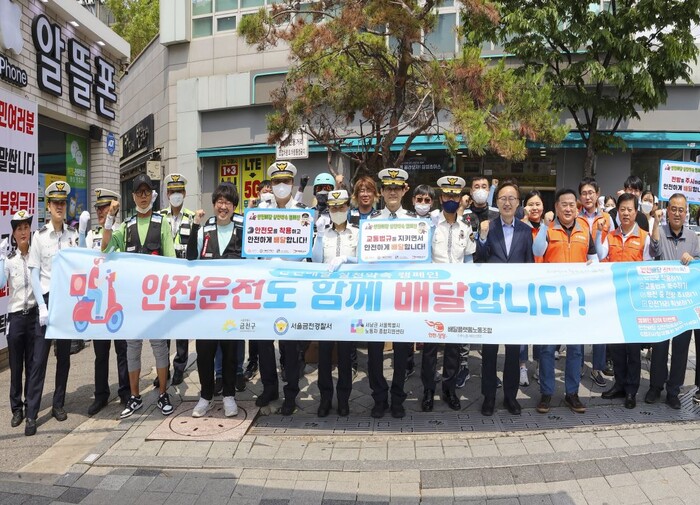이번 캠페인은 배달플랫폼 종사자의 안전사고를 예방하고, 주민과 상생하는 배달문화 조성을 위해 마련됐다. 구 일자리청년과, 금천경찰서 경비교통과, 서남권 서울시 노동자종합지원센터, 배달플랫폼 노동조합 서부지회 등 총 4개 기관(단체)이 참여했다.