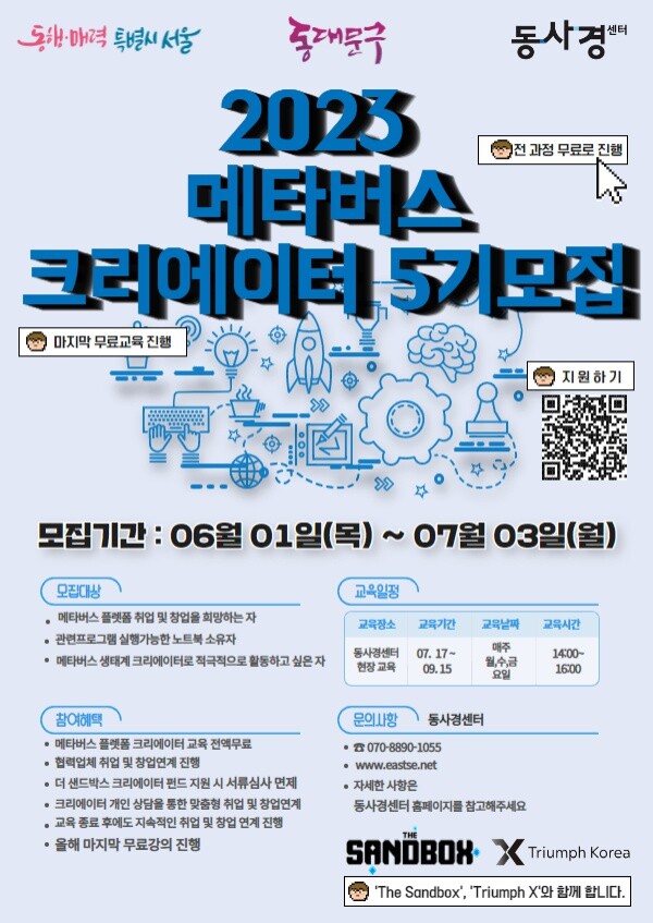 [시민일보 = 이대우 기자] 서울 동대문구(구청장 이필형)가 이달부터 오는 7월3일까지 ‘메타버스 크리에어티 5기’ 참여자를 모집한다.