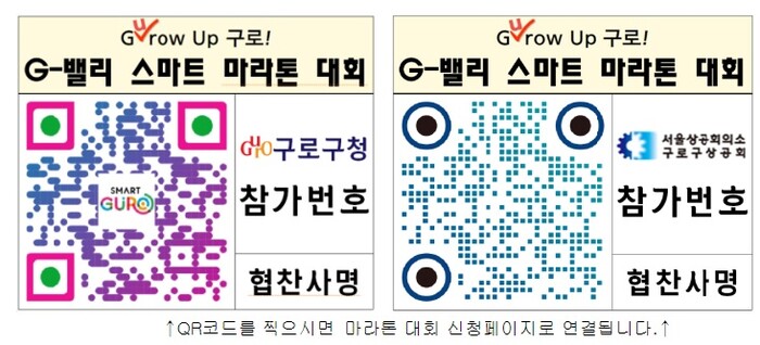 G밸리 스마트 마라톤의 콘셉트는 ‘QRPR 마라톤’으로, QR코드를 배번호표에 부착해 각 회사와 단체가 제품, 활동 등 알리고자 하는 내용을 홍보할 수 있는 것이 특징이다. QR코드를 직접 디자인해 신청할 수 있고, 별도로 요청하면 QR코드를 제작해준다.
