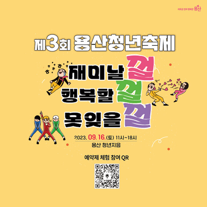 [시민일보 = 홍덕표 기자] 용산구(구청장 박희영)가 오는 16일 청년의 날을 맞아 오전 11시부터 오후 6시까지 용산청년지음(서빙고로 17, 공공시설동 3층)에서 '제3회 용산청년축제-껄껄껄'을 개최한다.