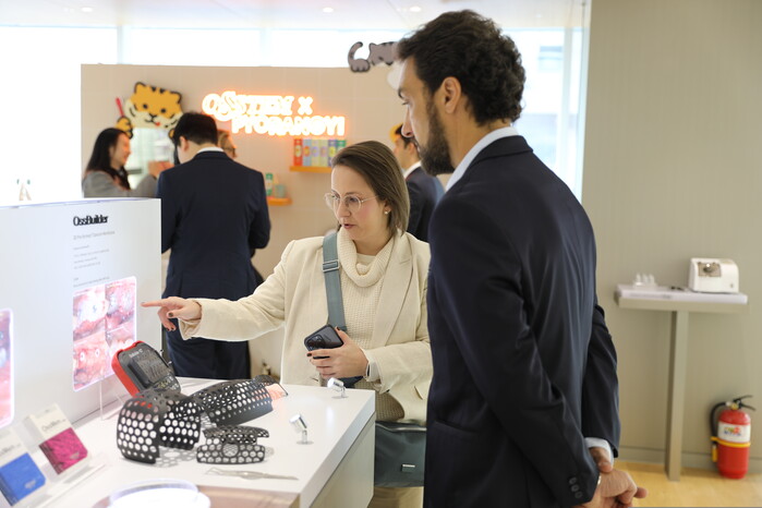 | ▲ 브라질 맨딕대학 관계자들이 오스템임플란트 서울 중앙연구소에 마련된 제품전시관을 둘러보는 모습. (사진=오스템임플란트 제공) |