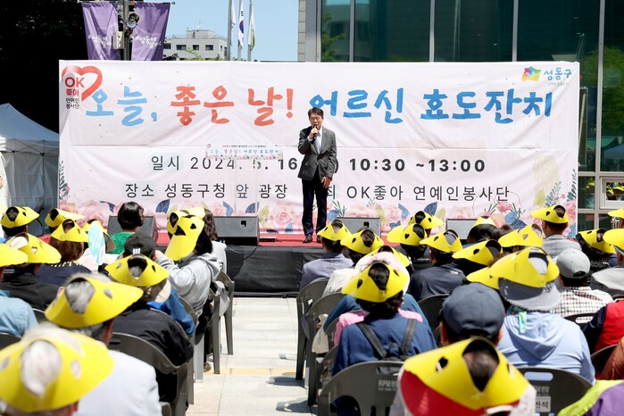 [시민일보 = 변은선 기자] 서울 성동구(구청장 정원오)는 최근 구청 앞 광장에서 OK좋아 연예인 봉사단과 함께하는 ‘오늘, 좋은 날! 어르신 효도잔치’ 행사가 열렸다고 밝혔다.