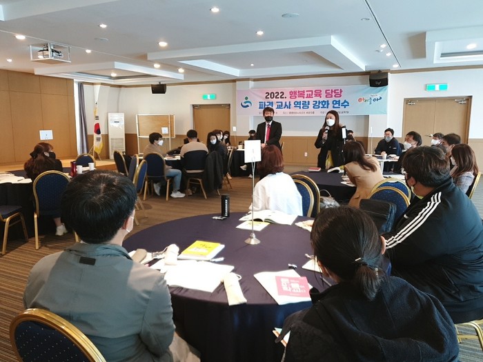 경상남도 교육청(교육감 박종훈)은 7일 통영 마리나 리조트 해금강 홀에서 행복 교육 담당자들의 역량을 강화하는 연수를 진행했다.
