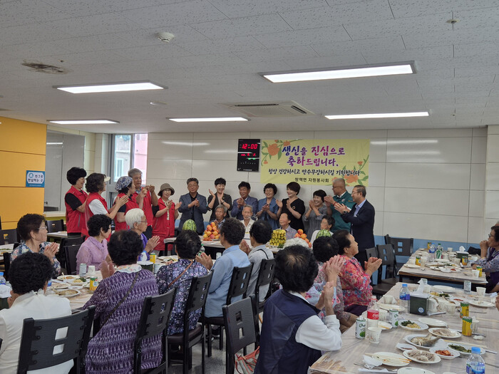 박성태 쌍책면 자원봉사회장은 “어르신들을 생각하며 준비한 식사가 마음에 드셨으면 좋겠다”며 “소박한 생신상이지만 어르신들이 기뻐하시는 모습을 보니 보람을 느끼고, 앞으로도 다양한 봉사활동으로 나눔과 봉사의 가치를 실천하겠다”고 말했다.