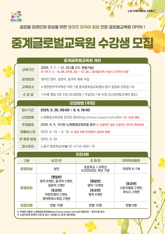 | ▲ 노원구 중계글로벌교육원 수강생 모집 리플릿. (사진=노원구청 제공) |
