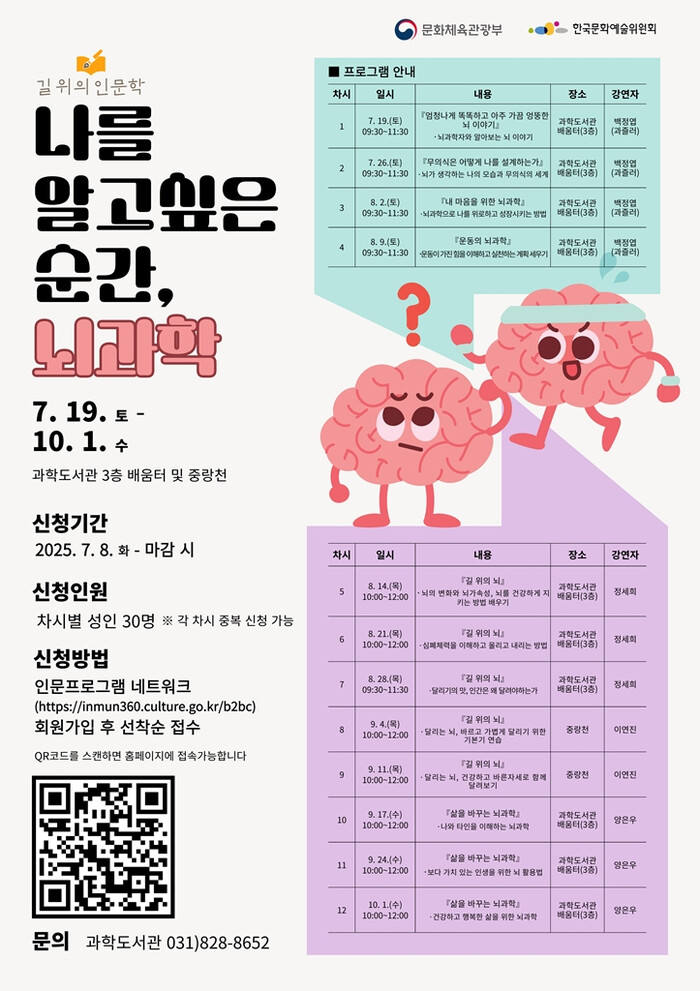 이희숙 도서관과장은 “이번 프로그램은 뇌과학을 통해 나를 들여다보고 마주할 수 있도록 구성했다”며 “더 나아가 나를 넘어 타인을 이해하고 공감하는 인문학적 가치를 발견하는 계기가 되길 바란다”고 말했다.