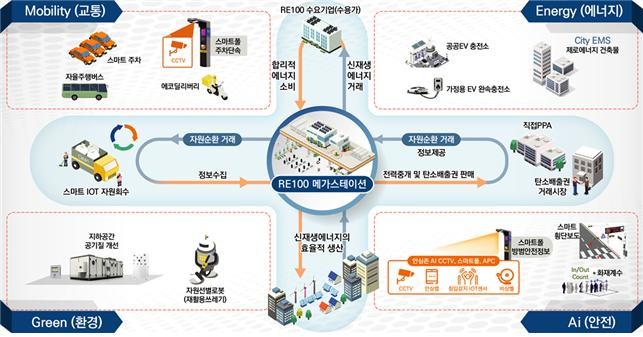 스마트서비스는 스마트주차장, AI 지능형 CCTV, 지능형 자원순환수거 자판기, 신재생에너지 기반 EV 충전소 등 안전하고 편리하며 쾌적한 도시환경 조성을 위해 시민들이 체감할 수 있는 서비스 위주로 운영된다. 더불어 사업의 지속성과 안정성을 위해 신재생에너지를 기반으로 비즈니스 모델을 연계해 운영할 계획이다.