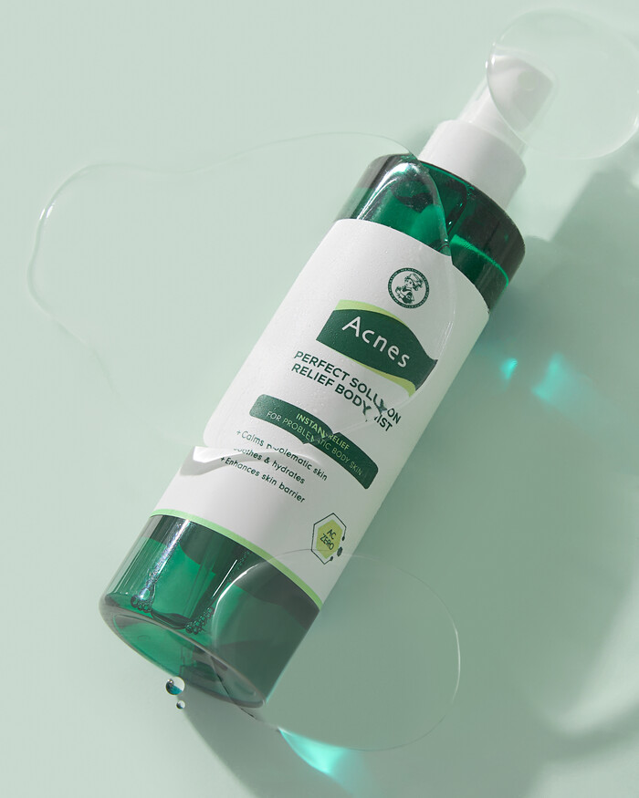 또한 아크네스 퍼펙트 솔루션 릴리프 바디 미스트는 미백 기능성 화장품으로, 피부 톤 개선 및 진정 효과를 제공한다.
