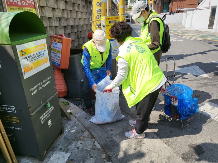 | ▲ 올해 하반기 안심일자리 사업 참가자들이 환경정비활동을 하고 있다. (사진제공=관악구청) |