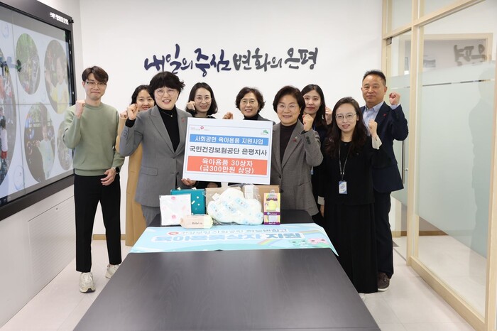 국민건강보험공단 은평지사는 물티슈, 빨대 컵, 이유식 용기 등이 포함된 10만 원 상당의 육아용품 상자 총 30개를 지원했다. 은평구는 전달받은 육아용품을 관내 생활이 어려운 영유아 보육가정에 전달할 예정이다.