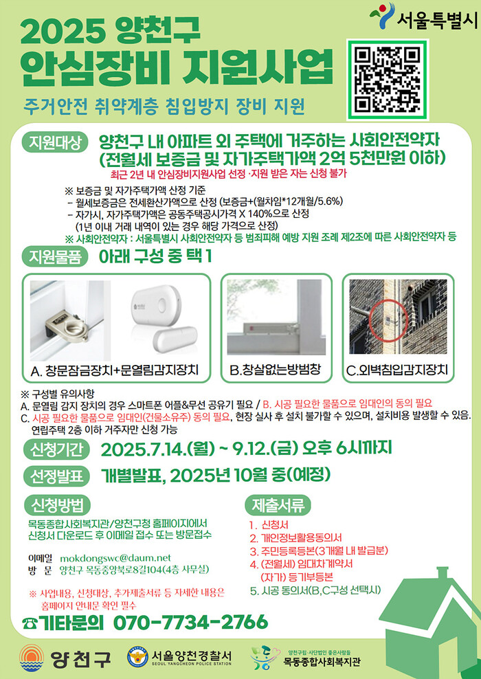 | ▲ ‘2025 양천구 안심방지 지원사업’ 안내 포스터. (사진=양천구청 제공) |